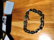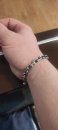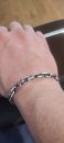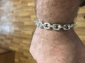Полновесный браслет. На текущей странице изображено фото мужского серебряного браслета якорного плетения с чернением. Мужским его в первую очередь делают размеры, да и, откровенно говоря, угловатые и несколько грубые формы «Якоря с гранями» в качестве браслета не часто пользуются спросом у девушек, хотя безусловно есть и такие.
